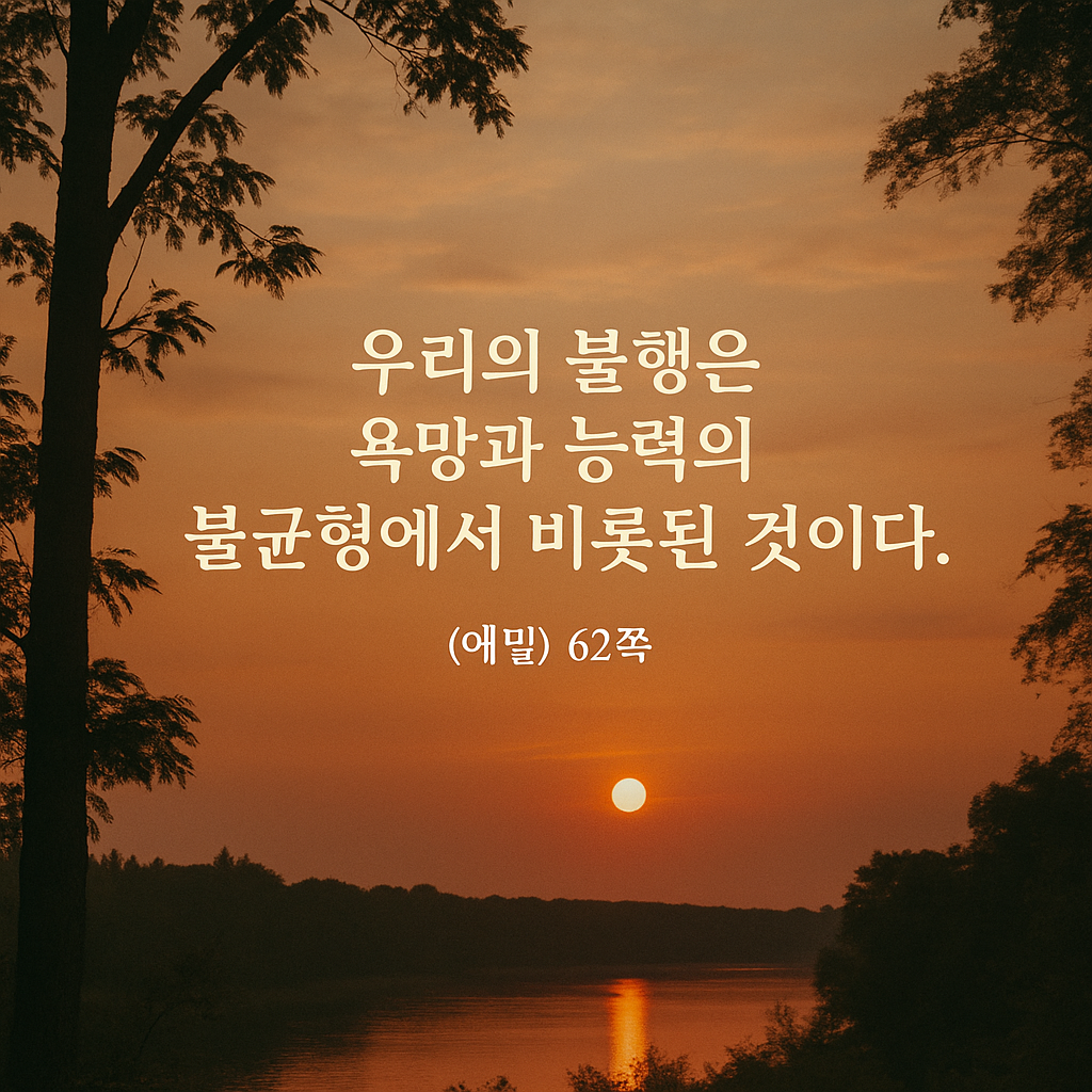 [오늘의 명언] 우리의 불행은 욕망과 능력의 불균형에서 비롯된 것이다. - [에밀] 62쪽